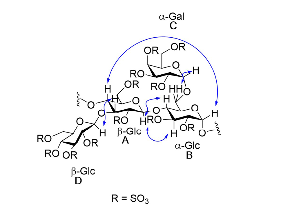 張嘉銓教授團隊研究該化合物的結構,發現它是一種獨特的醣分子(1種硫酸化的半乳葡萄多醣)。此分子是由葡萄糖和半乳糖單元和硫酸酯基所構成,且其特定的結構很可能是其生物活性的關鍵。
