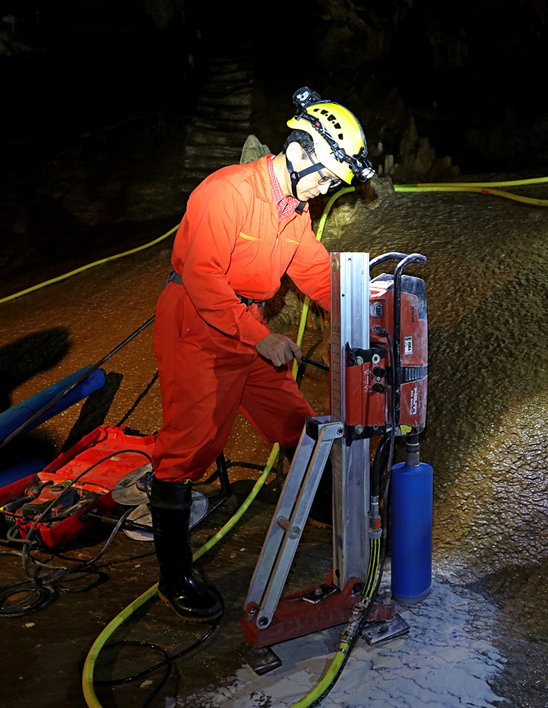 沈川洲教授於義大利洞穴鑽取岩心,將利用新開發鈾釷同位素分析技術進行精確定年工作,以便重建過去數十萬年氣候變化紀錄。